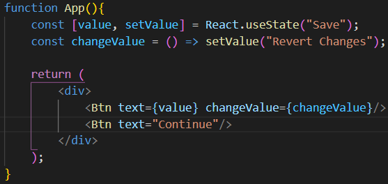 props๋ ์ฒซ ๋ฒ์งธ์ด์ ์ ์ผํ Btn์ด ์ ๋ฌ ๋ฐ๋ ์ธ์์ด๋ค.