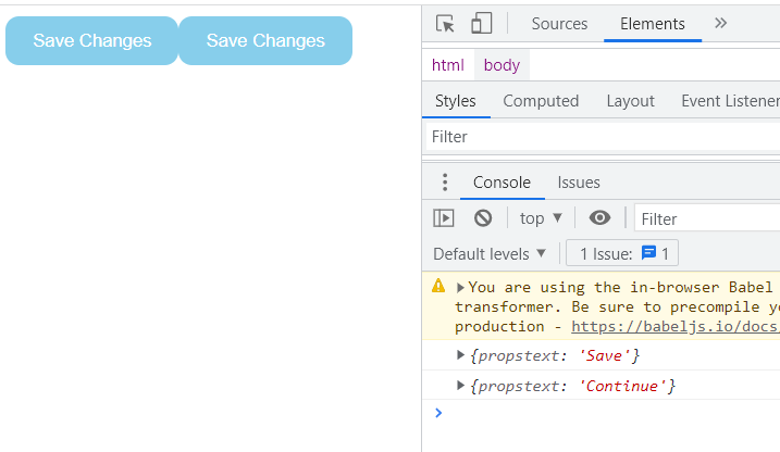 syntax๋ฅผ ์ปค์คํ ์ปดํฌ๋ํธ์ ๋๊ฐ์ด ์ ์ฉํด ๋ณผ ์ ์๋ค. ์ด๊ฒ ๋ฐ๋ก ์ฐ๋ฆฌ๊ฐ ๋ฐ์ดํฐ๋ฅผ ์ ๋ฌ์ํฌ ์ ์๋ ๋ฐฉ๋ฒ์ด๋ค. ์ปดํฌ๋ํธ๋ฅผ ์ค์ ํ๊ณ ๋ ์ฌ์ฌ์ฉํ ์ ์๋ค. ์ด์ ์ฐ๋ฆฌ๋ ์๋ก์ด ์ ๋ณด๋ฅผ Btn ์ปดํฌ๋ํธ์ ์ ์กํ ๊ฒ์ด๋ค.