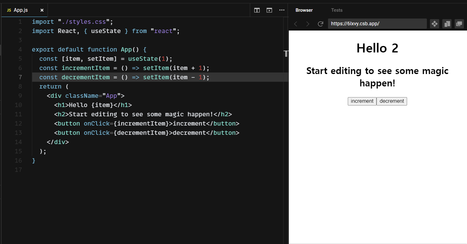 useState를 사용해서 숫자를 올리고내리는 코드이다.