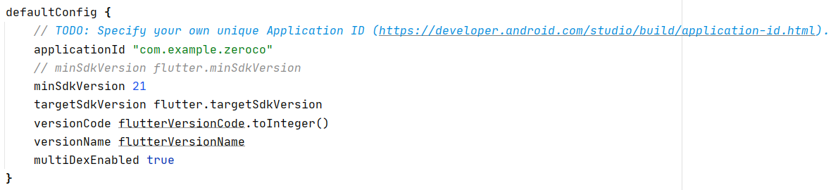 ์ฒ์์ ์ฃผ์๋ ์ฝ๋์ฒ๋ผ minSdkVersion flutter.minSdkVersion ์ด๋ ๊ฒ ๋์ด์๋๋ฐ
