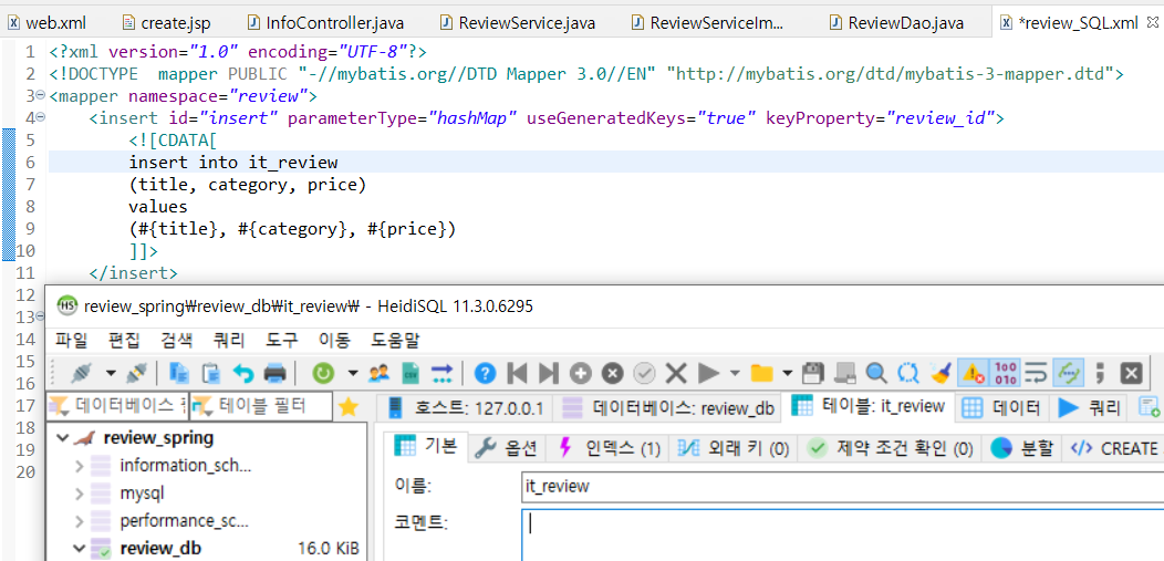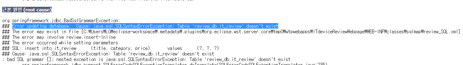 Error updating database. Cause: java.sql.SQLSyntaxErrorException: Table 'review_db.it_review' doesn't exist