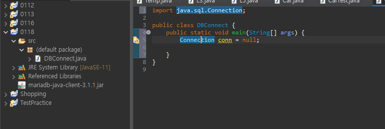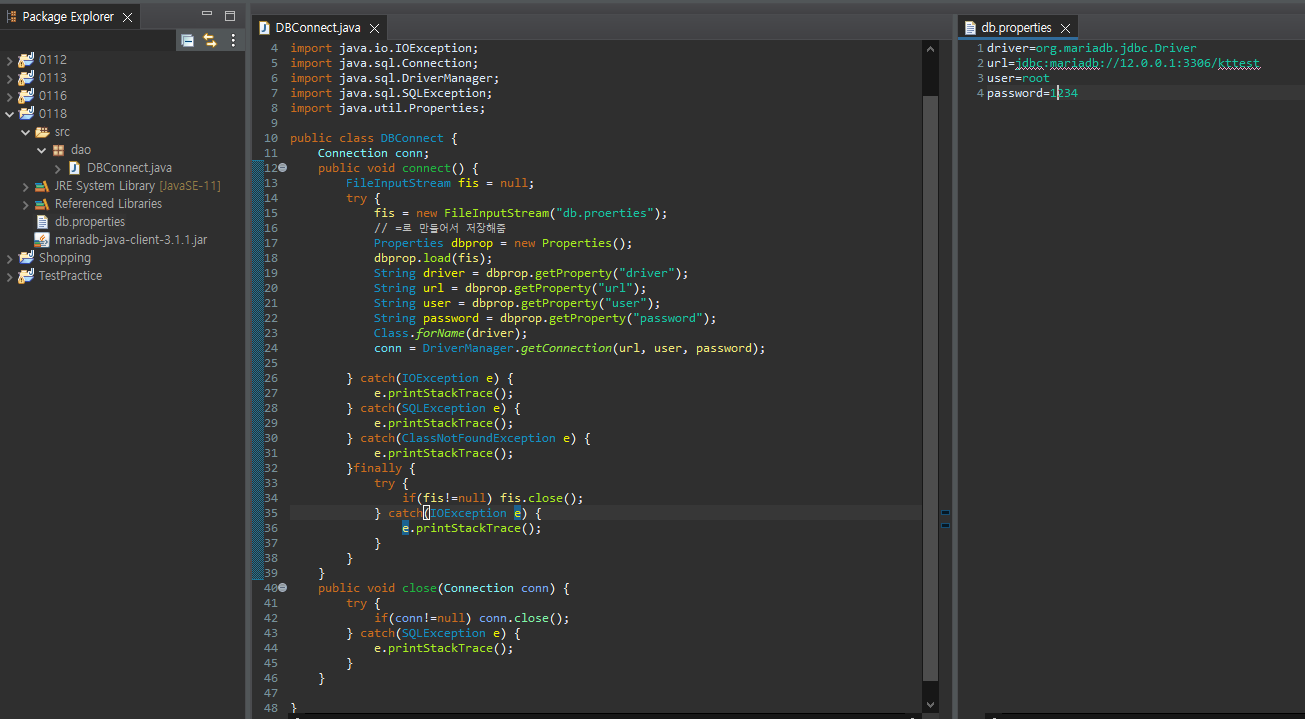 그리고 이렇게 DBConnect이라는 Class도 만들어줬다.