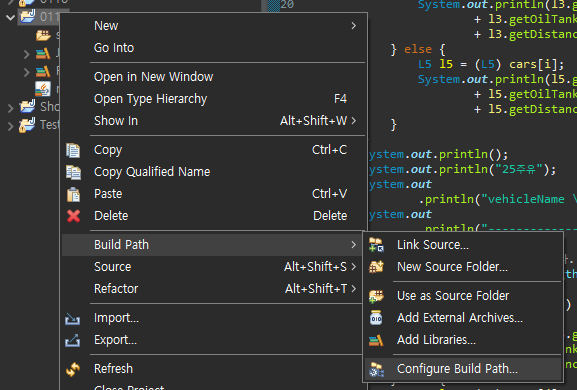 프로젝트 우클릭 > build path > configure build path