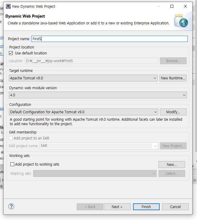 그리고 새로운프로젝트만들기에서 dynamic web project를 선택해줌