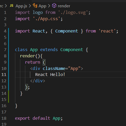 App.js๋ index.js ํ์ผ๊ณผ ๊ฐ์ ๊น์ด์ ์๋ค.