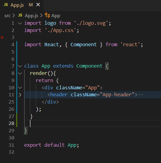 ์ด ๋ App.js ํ์ผ ์๊น์๊ฐ ํจ์ ํ์, ํด๋์ค ํ์์ด ์๋๋ฐ ์ํ์ฝ๋ฉ ์์ ์์๋ ํด๋์ค ๋ฐฉ์์ ์ฌ์ฉํ๊ธฐ ๋๋ฌธ์ ํด๋์ค ๋ฐฉ์์ผ๋ก ๋ฐ๊ฟ์ฃผ์๋ค.