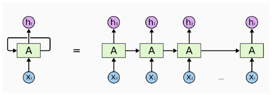Input x_t๋ฅผ ๋ฐ์์ h_t๋ฅผ ๋ด๋ณด๋ธ๋ค. ๋ค์๋จ๊ณ์์์ network๊ฐ ์ด์ ๋จ๊ณ์ ์ ๋ณด๋ฅผ ๋ฐ๋๋ค๋๊ฒ์ ์๋ฏธ!