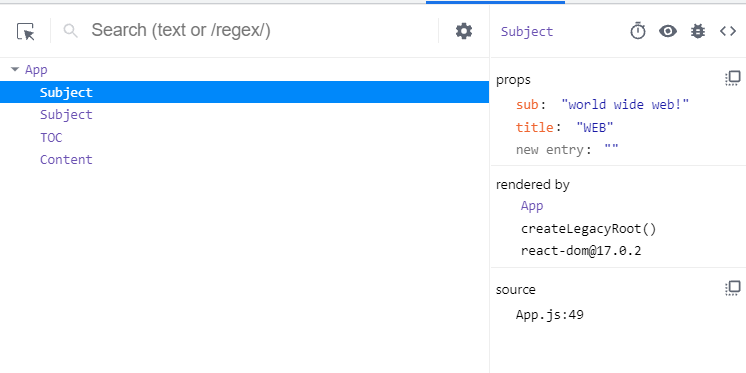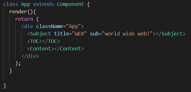 ์ฐ๋ฆฌ๋ Subject๋ผ๋ ์ปดํฌ๋ํธ๊ฐ ์คํ๋ ๋ title์ WEB์ด๋ผ๋ ์์ฑ์