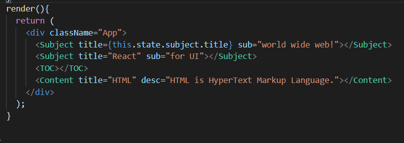 ์ด ๊ฐ์ state๋ก ๋ง๋ค๊ณ state ๊ฐ์ subject์ props๋ก ์ ๋ฌํ๋ ๊ฒ์ผ๋ก ์ฝ๋๋ฅผ ๊ฐ์ ํด๋ณผ ๊ฒ์ด๋ค.