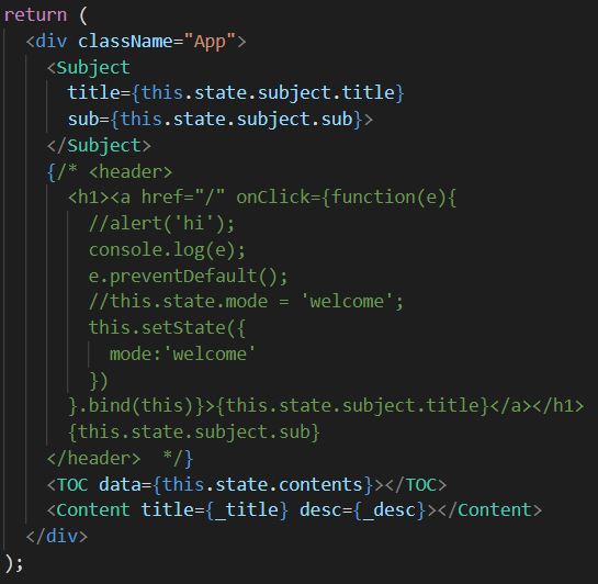 <header>๋ผ๋ ์ฝ๋๋ ์๋ subject.js ์์ ์๋ ์ฝ๋์ด๋ค.