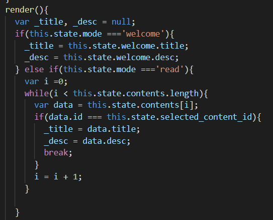 ๊ธฐ๋ณธ๊ฐ์ผ๋ก 2๋ฅผ ์คฌ๋ค. ๊ทธ๋ฆฌ๊ณ App์์ render()๋ฅผ ์คํํ ๋ while๋ฌธ์ผ๋ก ์๋ฅผ ํ๋์ฉ ๋๋ ค๊ฐ๋ณด๋ฉด์ ํด๋น id์ ๋ด์ฉ์ ๋ณธ๋ฌธ์ ๋์์ค๋ค. ๊ธฐ๋ณธ๊ฐ ์ค์ ์ผ๋ก๋ง ๋ณธ๋ฌธ ๋ด์ฉ์ด ๋ฐ๋๊ธฐ ๋๋ฌธ์ ํด๋ฆญํ์ ๋ ๋ฐ๋๋๋ก ์ฝ๋๋ฅผ ์ถ๊ฐํด์ฃผ์ด์ผ ํ๋ค.
