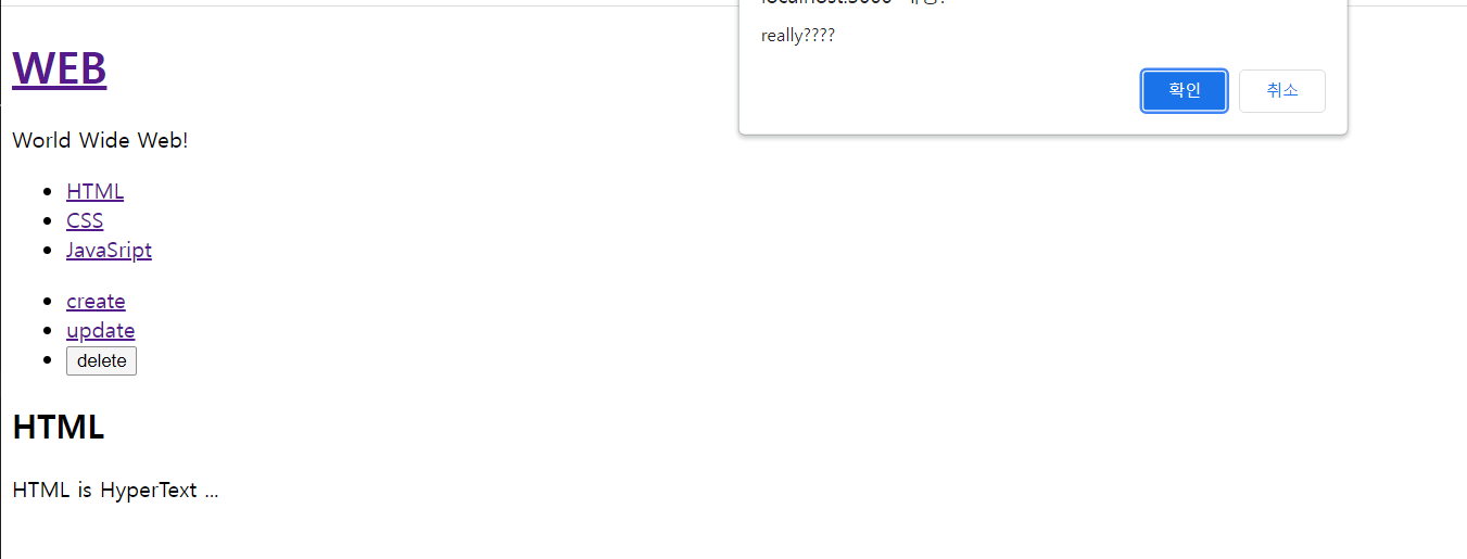 삭제할 때 진짜 삭제하냐고 물어보도록 confirm을 사용할 것이다.