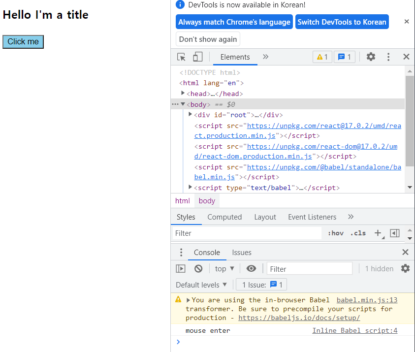 브라우저가 JSX를 이해할 수 있도록 뭔가를 설치해줘야 한다.